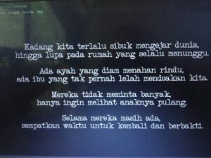 Juga dengan pesan: “Pulanglah, bukan hanya ke rumah, tapi juga ke hati ayah dan ibu!”