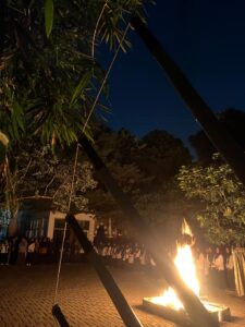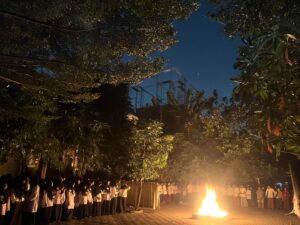 Api unggun befungsi untuk menghangatkan suasana dan menjadi simbol semangat yang membara. Menyala abangku….!
